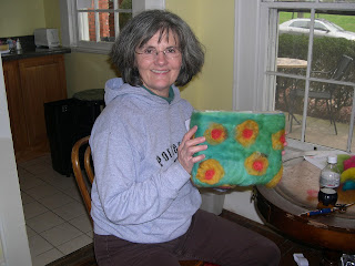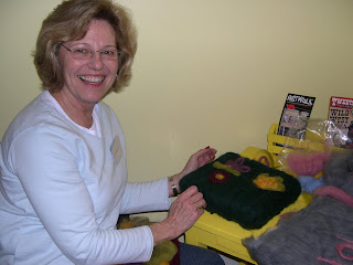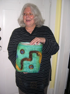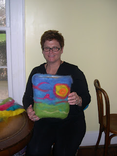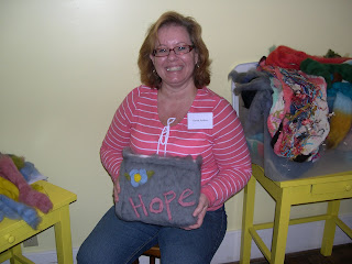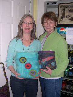 Debbie Lee (center back left) and I (center back right) watch as everyone in the class secures roving to the foam forms. Each bag was as unique as the owner!