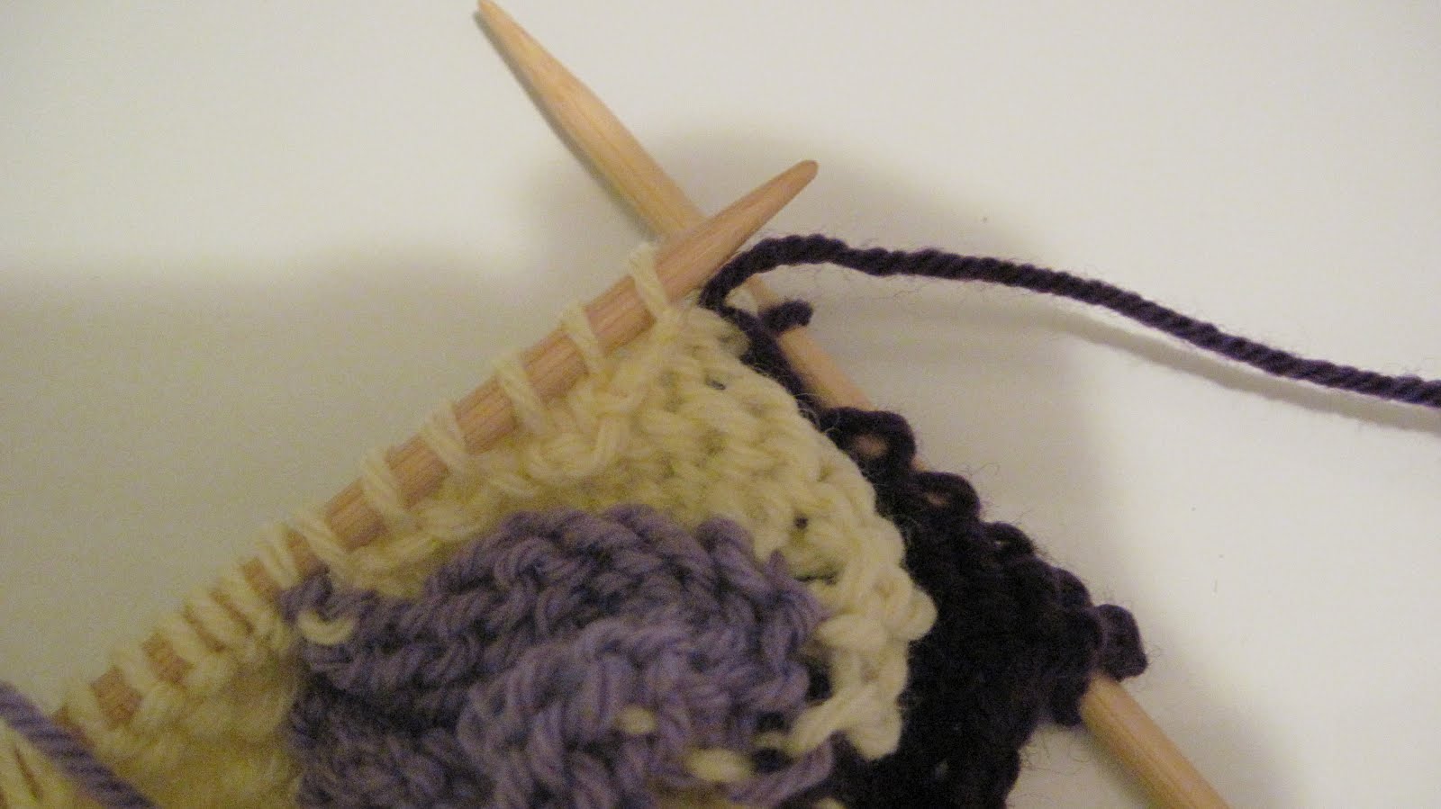 You can tell that each patch became tighter and tighter as I went along ... the garter-stitch patch being the most relaxed of all four. If I were to use any of these stockinette variations in a project, I'd have to loosen up. Those twisted stitches are super tight! AAACKK!