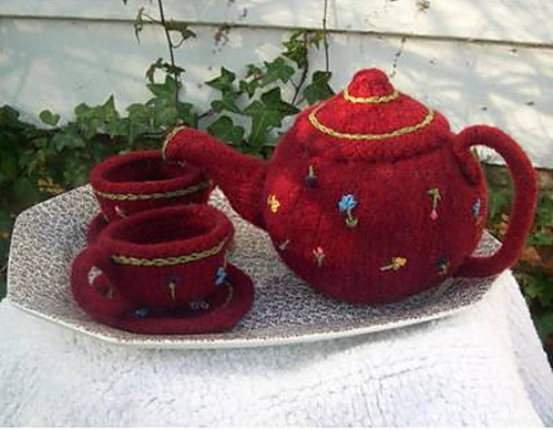 Continue knitting for as long as you'd like the scarf! I think it would look marvelous as a very long scarf, working at least 8 repeats of the charts, ending with the bumble-bee design. Again, seed-stitch three rows and then, if you'd like, work a picot bind-off ... or just a simple bind off. You could add a fringe or tassels, if you'd like. I think that adding different-length strands of yarn with small crocheted or knitted flowers on the ends could be very quirky and cute.